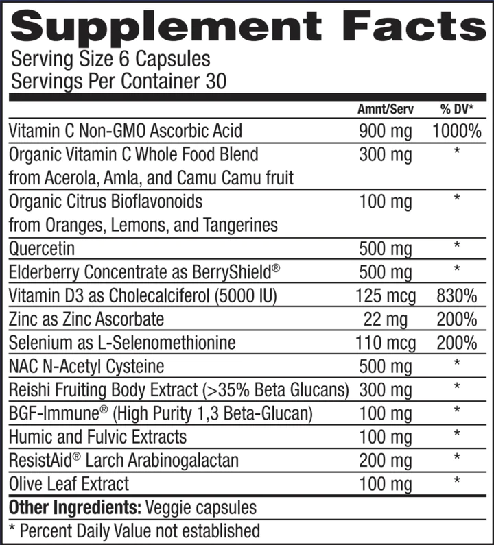 - Clinically-Studied ingredients proven to support healthy immune response including ResistAid®, BFG-Immune®, and BerrySheild® Elderberry Concentrate