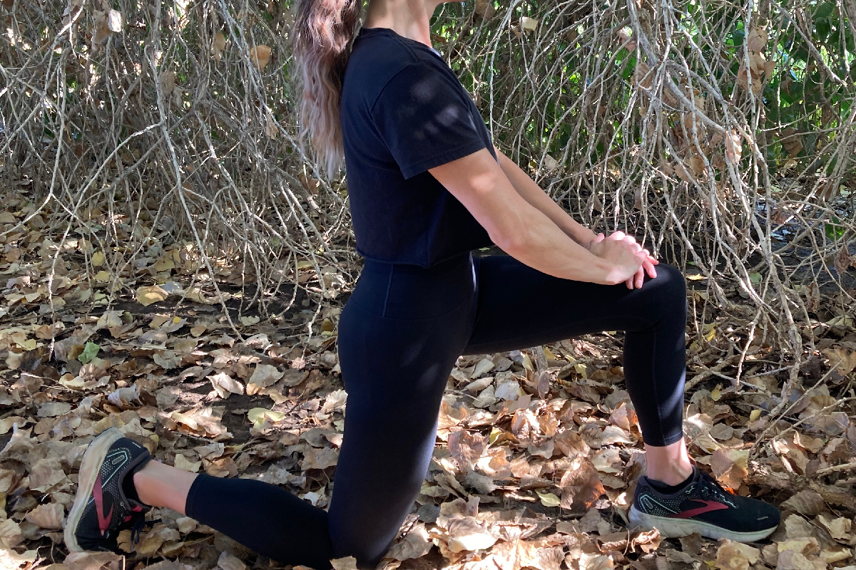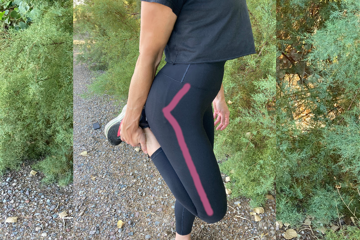 Make sure to tuck your tush downward. Push the front of your pelvis forward. Do not bend your leg at the hip. This ensures that you are stretching the right muscles.